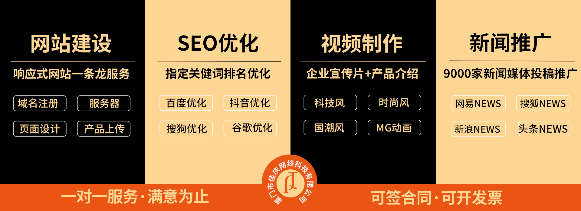 H5響應(yīng)式網(wǎng)站搭建設(shè)計(jì).外貿(mào)網(wǎng)站制多.站群推廣.百度谷歌SEO優(yōu)化推廣.媒體新聞投稿.小程序公眾號(hào)開(kāi)發(fā).視頻宣傳片制作.企業(yè)郵箱滿足不同行業(yè)客戶的各種需求